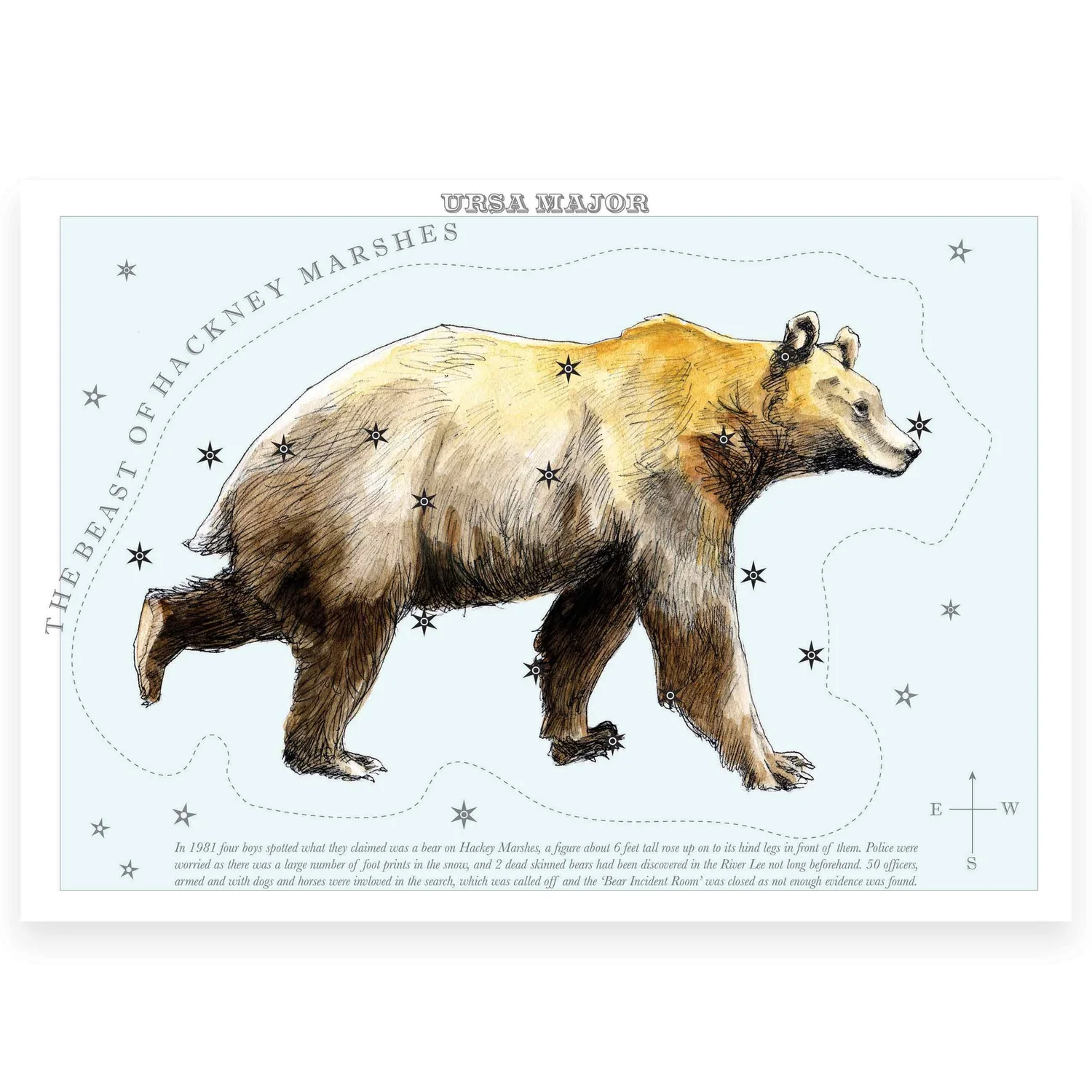 2) Ursa Major (The Great Bear), featuring the bear that was spotted on Hackney Marshes in the 1980s.