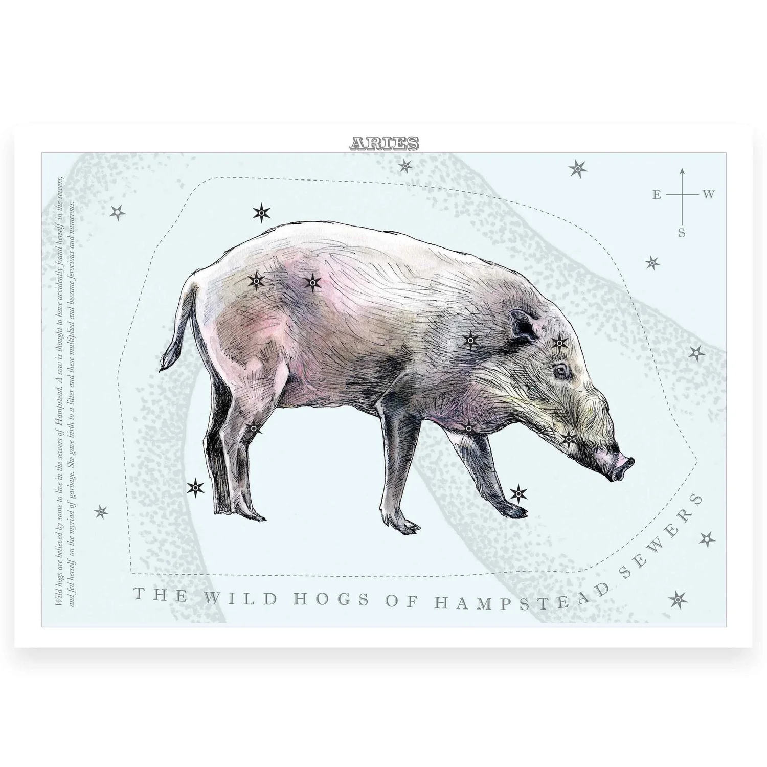 8) Aries (Ram), featuring the wild hogs thought to live in Hampstead sewers (kind of ram like?!)