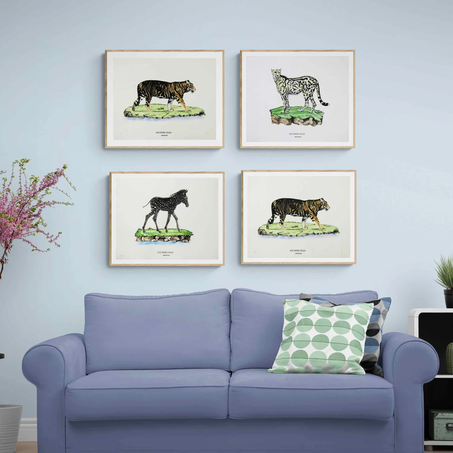 Disruptors is a series of 4 hand coloured screen prints depicting animals that have disrupted the normal genetic pattern, through genetic mutations, to end up with unusual markings. They are inspired by traditional natural history illustrations but portray 'odd ones out'.